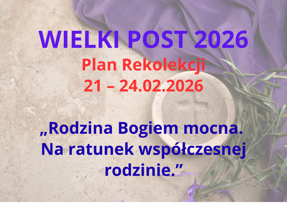 18:30 - Msza św. z nauką ogólna, uroczyste błogosławieństwo, zakończenie rekolekcji.