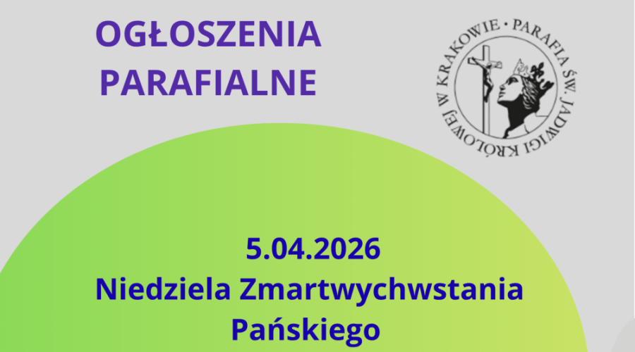 Spotkanie Zespołu Charytatywnego we wtorek 7 kwietnia po Mszy św. o 18.30. Informujemy, że plac zabaw, który jest przy naszym kościele należy do Katolickiej Szkoły Podstawowej św. Jadwigi Królowej. Za zgodą Rady parafialnej został ogrodzony w trosce o bezpieczeństwo dzieci i zabezpieczenie infrastruktury.