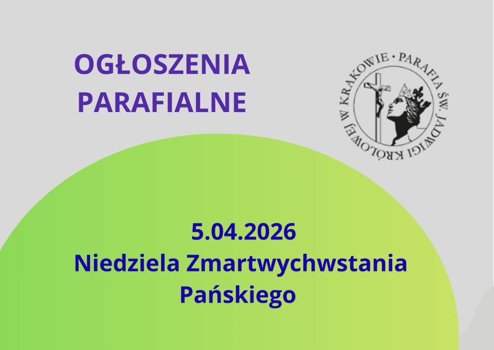 W środę 8 kwietnia o godz. 18.00 zapraszamy na Nabożeństwo do św. Jadwigi Królowej. W czasie nabożeństwa odczytujemy prośby indywidualne zapisane na kartkach, które przez cały miesiąc można składać do skrzynki przy figurze św. Jadwigi, oraz prośby przesłane do Duchowego Szpitala św. Jadwigi Królowej. Na koniec nabożeństwa udzielane jest indywidualne błogosławieństwo Najświętszym Sakramentem.