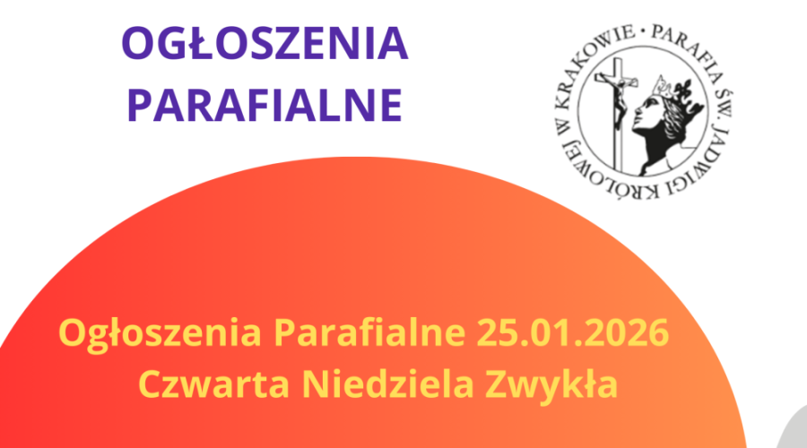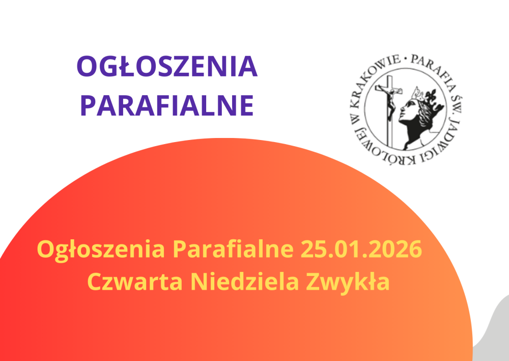 W poniedziałek 26 stycznia po wieczornej Mszy św. spotkanie Zespołu Charytatywnego. W niedzielę 1 lutego Zespół Charytatywny będzie zbierał na biednych w naszej parafii i na Kuchnię Św.Jadwigi.