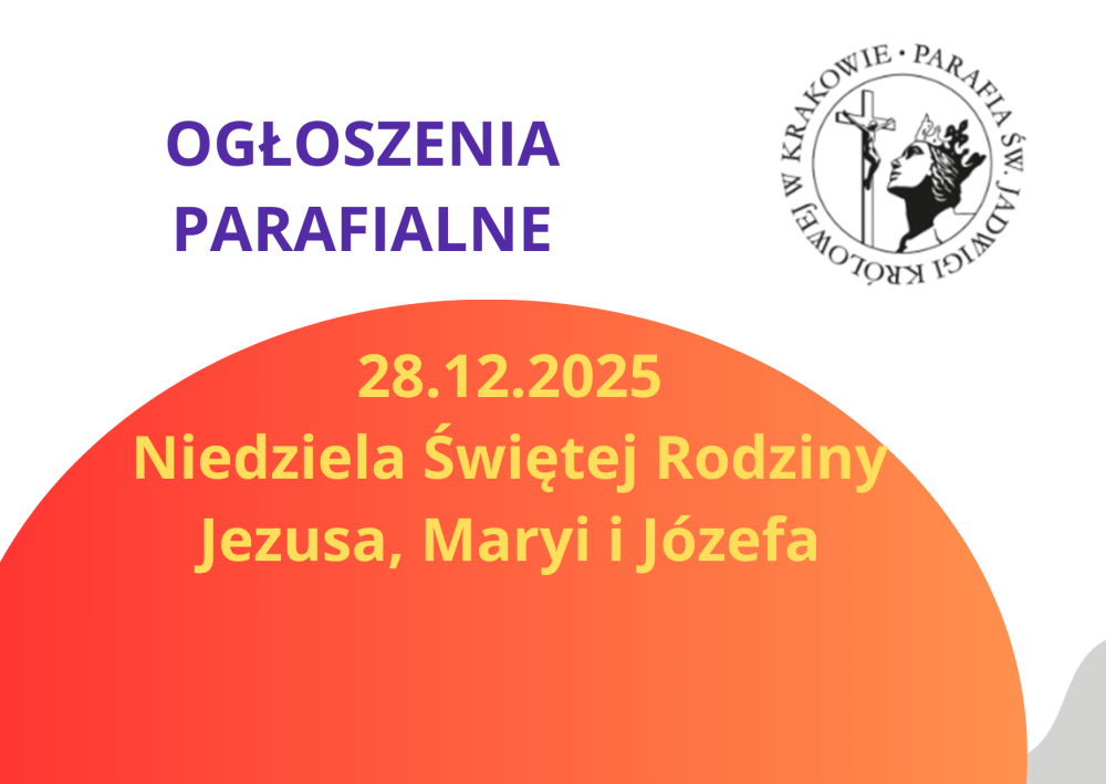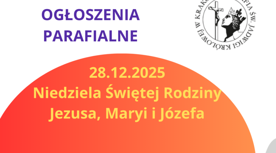 • Informujemy, że od 1 stycznia 2026 roku nastąpi zmiana godzin celebrowania Mszy św. w niedzielę. Msze św. będą celebrowane w następujących godzinach: 7.00, 9.00, 11.00, 12.30 , 18.30, 20.00. Spowiedź święta będzie pół godziny przed każdą Mszą św.