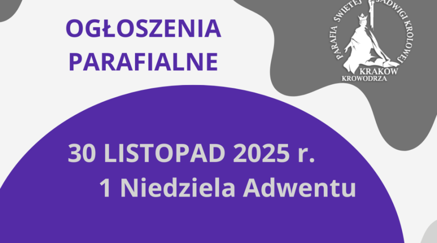 Spotkanie Zespołu Charytatywnego w poniedziałek 1 grudnia po Mszy św. o 18.30. W następną niedzielę zbiórka na biednych w naszej parafii i Kuchnię św. Jadwigi. Zespół Charytatywny będzie rozprowadzał Świąteczne Świece Caritas.